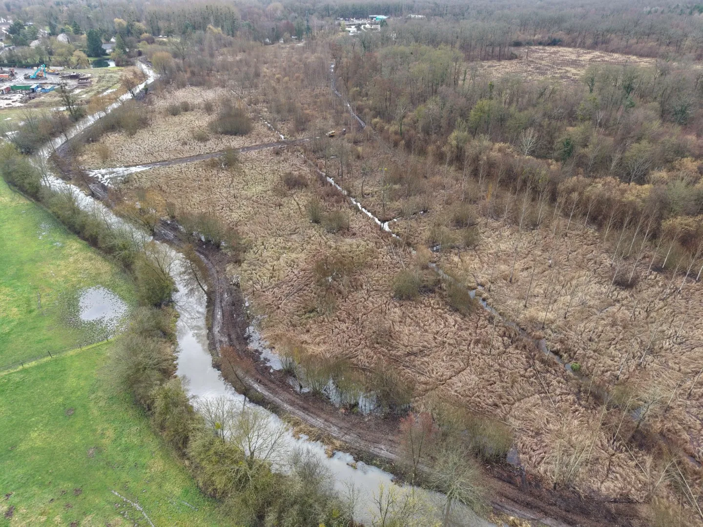 - Etrépage/décapage de 800 m2 de zone humide supplémentaire le long de l’Aunette et création de 3 petite mares temporaires
