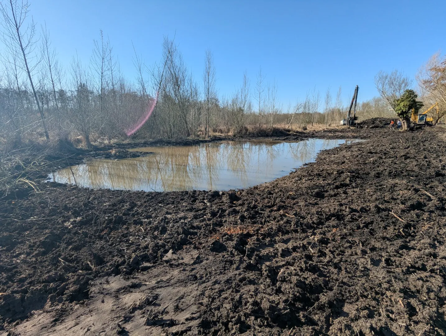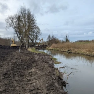 La zone humide et les berges du cours d’eau restaurés feront ensuite l’objet d’un ensemencement et de plantations d’hélophytes, d’arbres et d’arbustes adaptés au milieux naturel humide afin de retrouver une flore locale.